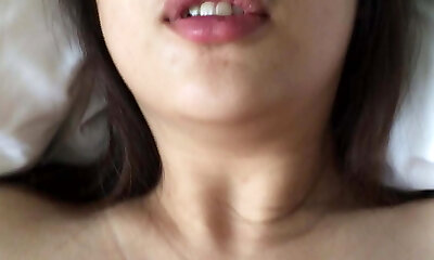 Arousing Asian teenie in school uniform for a pov romp show