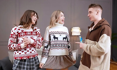 Two cute girls share a hefty cock in an strong threesome