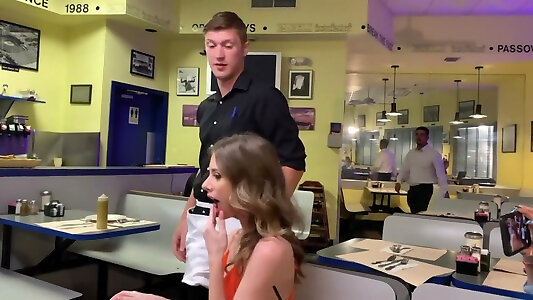Jism-thisty dame Anya Olsen entices waiter and penetrates him in the public toilet