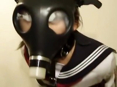Asian schoolgirl gas mask bondage