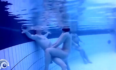 Nudists in the pool get filmed underwater
