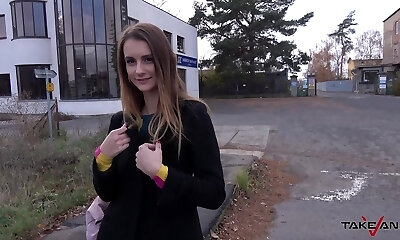Sexy czech teen girl having sex with old fellow for helping with her car