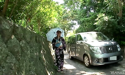 Kimono girl in a van deepthroats dick and gets toy fucked
