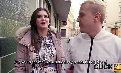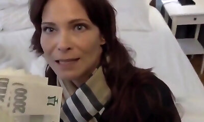 Skinny stunner agrees to deepthroat a stranger for a cash POV
