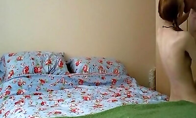 Anorexia pigtailed redhead girl has missionary, doggie-style and cowgirl lovemaking with creampie on the bed.
