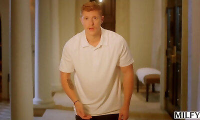 Pretty Curvy Blonde Babysitter Got Stuck In the Kitchen Sink & Screwed By Her DILF Boss