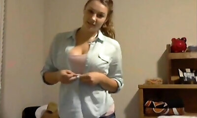 Stepsister Paige Owens puts on provocative underpants to seduce her ample stepbrother