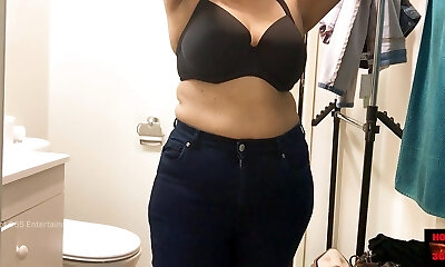 Gorgeous girl masturbating in the store