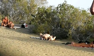 Hidden cam clip with an amateur Plumper sunbathing on a beach