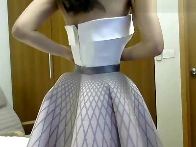女仆中国黑发蜂蜜在白色内衣得到她的背面拍摄的凸轮