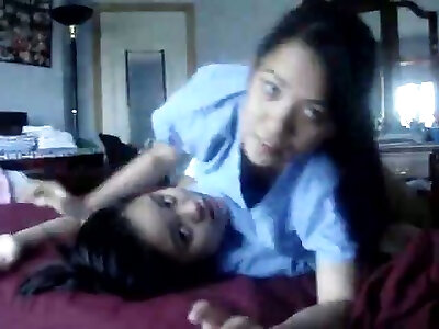 甜美的印度尼西亚女佣都有lezzy fucky-fucky在相机上